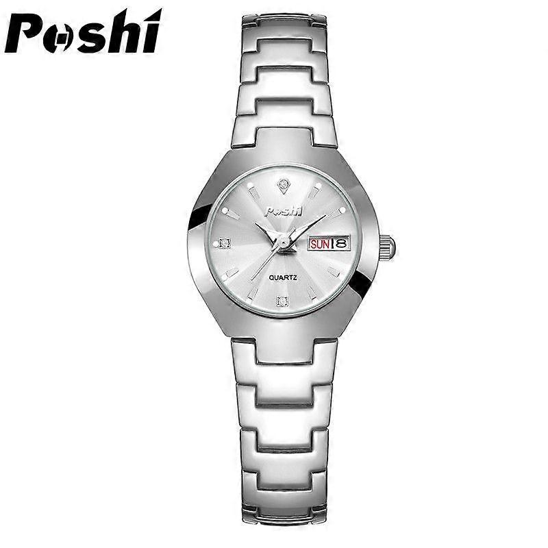 POSHI women's watch, fashionable, trendy, waterproof, luminous, simple, elegant, steel band, double calendar, quartz watch.