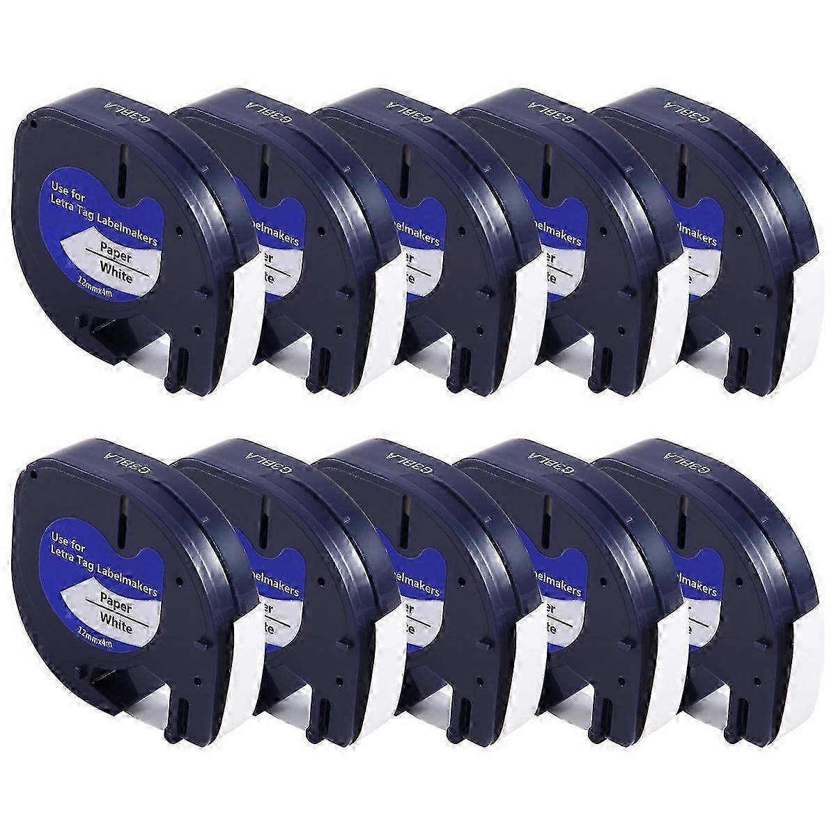 Label Maker Tape, 10 Rolls 12mmx4m, Compatible with LT-100H/QX50 etc., Office and Home Classification Label Tape