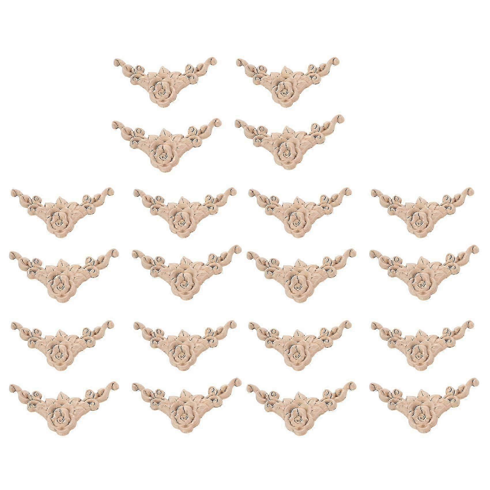 20pcs 8x8cm Unpainted Wood Carved Corner Onlays, European Style Cabinet Appliques