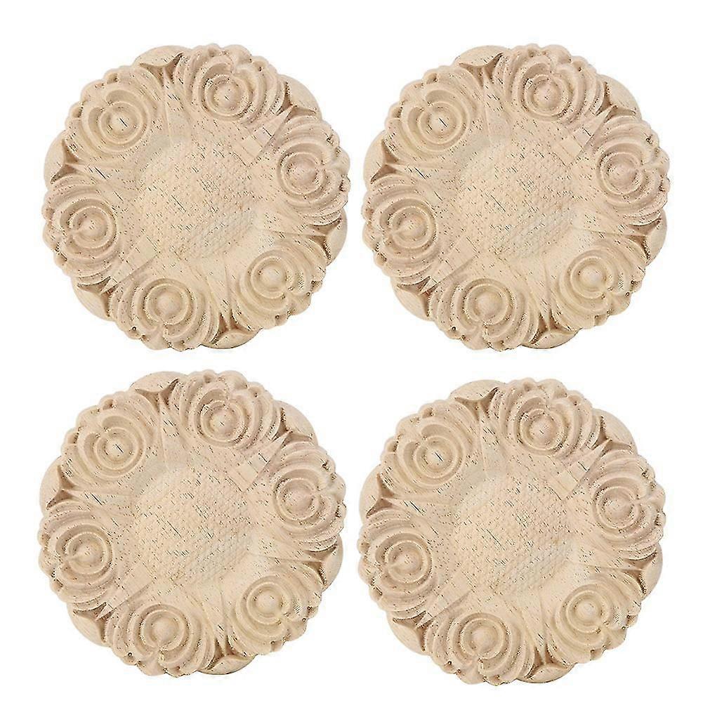 4Pcs 10cm Wood Carving Appliques for Furniture Cabinet Decoration