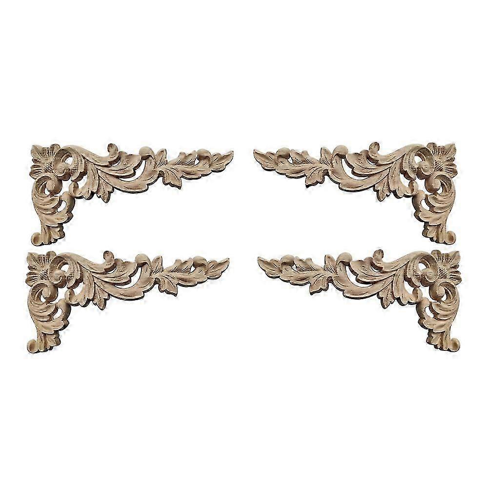 4Pcs Wood Carved Corner Applique Unpainted Cabinet Decal Decor