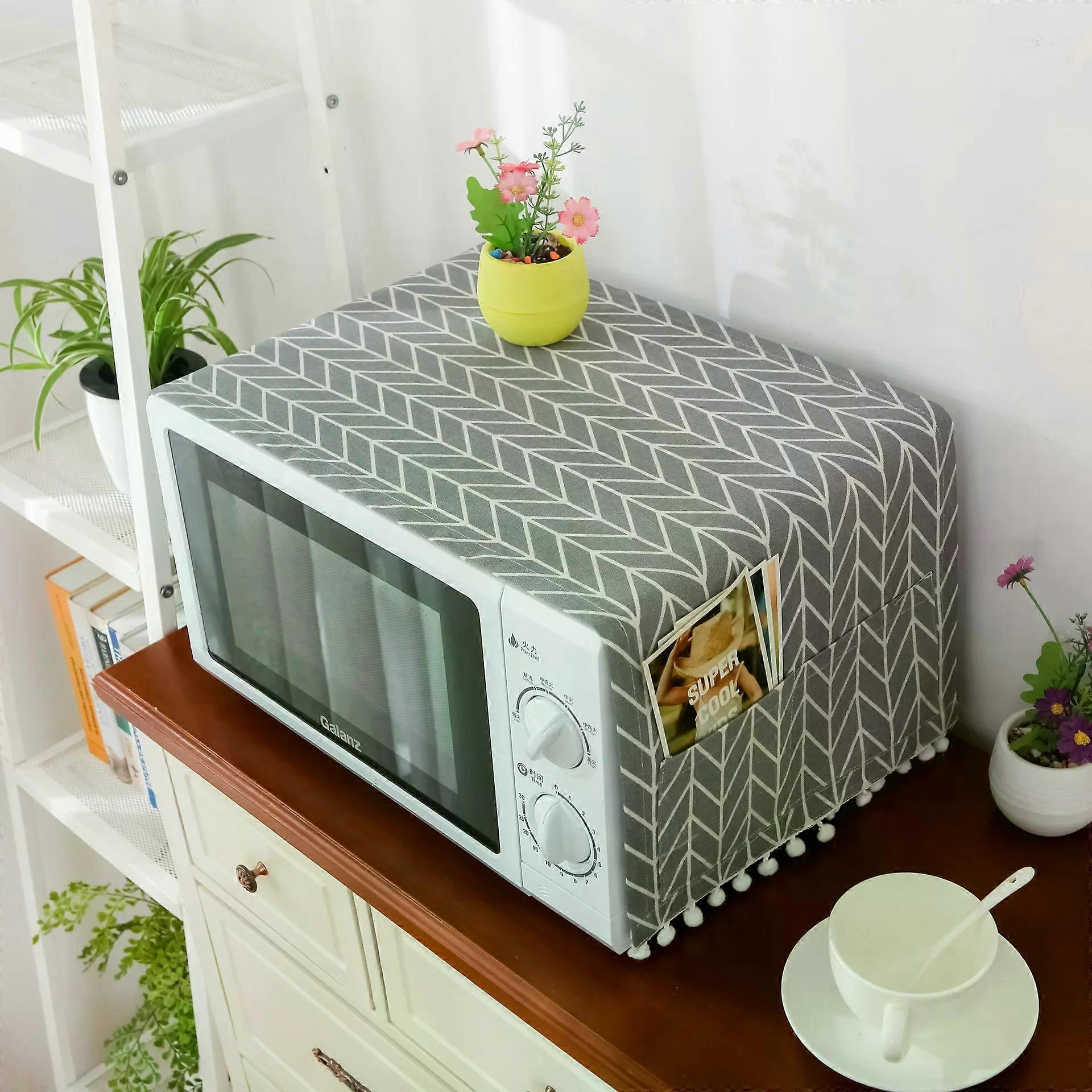 Microwave oven cover, cotton linen, black, pink, storage bag, Double Pockets, dust cover, kitchen accessories