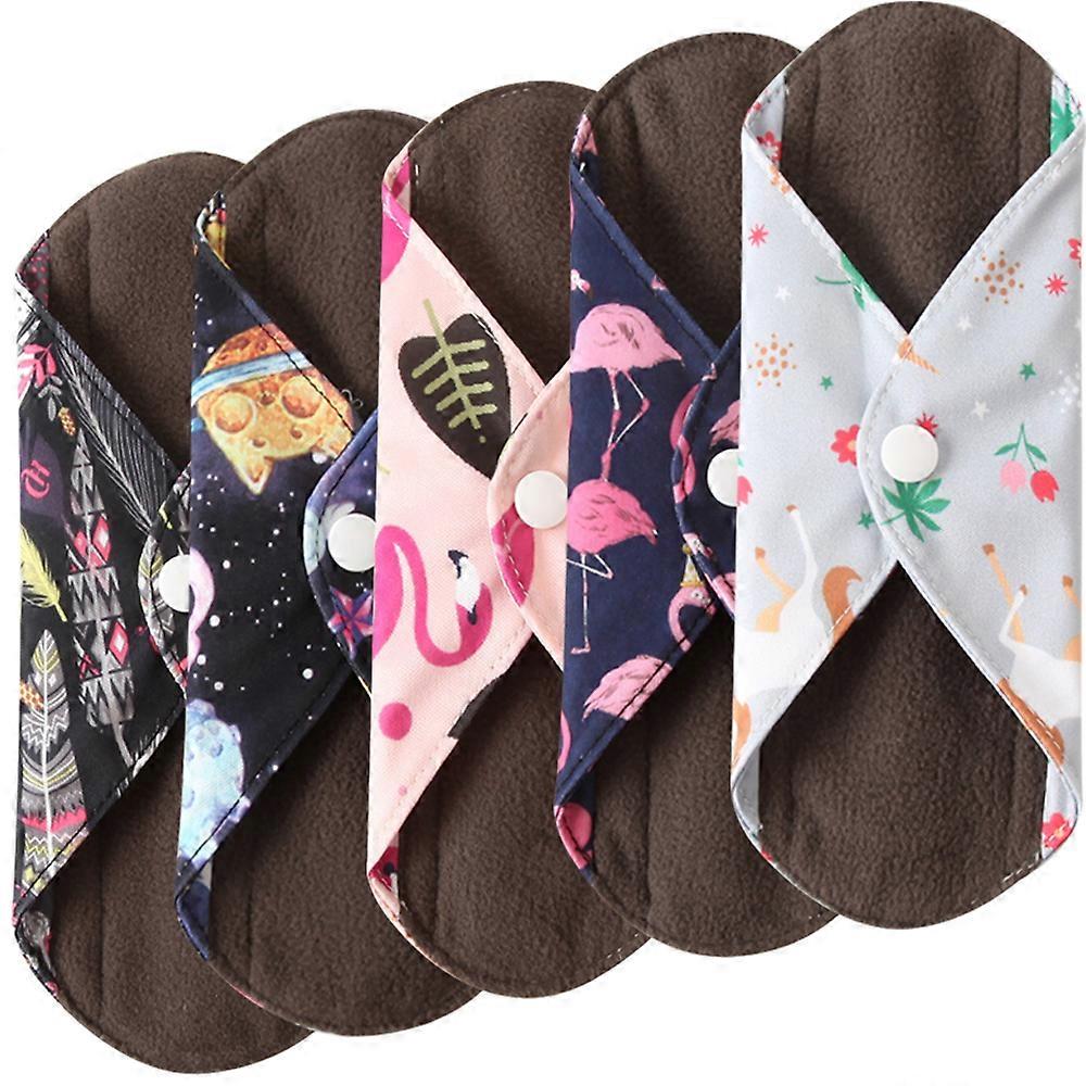 Ohbabyka 5pcs Washable Sanitary Towel Cloth Reusable Menstrual Pads Super-Absorbent Soft and Comfortable Bamboo Sanitary Pads
