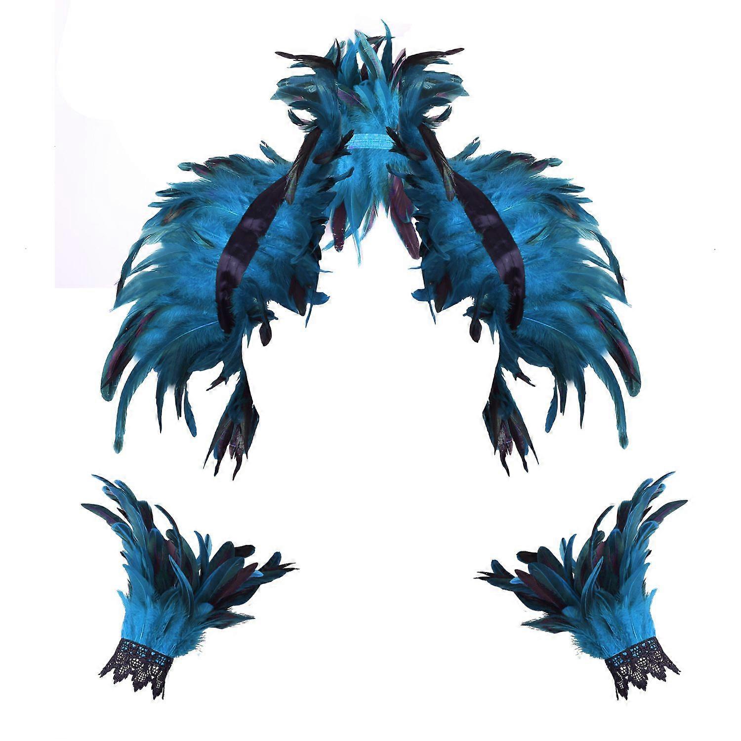 【Women's Feather Shawl】This cosplay shawl and cuffs are made from clean animal feathers and black ribbon, retaining the feathers' vibrant color and sheen. The selected feathers are finely textured and soft, ensuring comfortable wear.【Adjustable Ribbon】Both the cape and cuffs are adjustable. The black ribbon is easy to put on and adjust. The included cuffs complete your Halloween costume! This set is unisex.【Perfect Size】The Halloween shawl feathers are 80 cm/31.5 inches long and 38 cm/15 inches wide, with a ribbon length of 50 cm/20 inches. The cuff feathers are 17 cm/6.7 inches long and 17.5 cm/6.9 inches wide, with a ribbon length of 16.5 cm/6.5 inches.【Easy to Carry】This lightweight and portable shawl folds or rolls up easily, saving space and making it convenient to carry and store. It can be packed in a box for storage or reused when traveling.【Versatile Uses】Perfect for role-playing or Halloween costume parties, vampire parties, punk parties, gothic shows, retro parties, witch and crow costumes, holiday costumes, photography, club parties, and dance festival rave party costumes.Quantity: One set. Colors available: Blue/Black/Red/Green/Pink/Multicolored/Fuchsia/Purple/Orange.Note: 1. Due to differences in monitors and lighting effects, the actual color may differ slightly from the image!2. Please allow 1-3 cm deviation due to manual measurement!