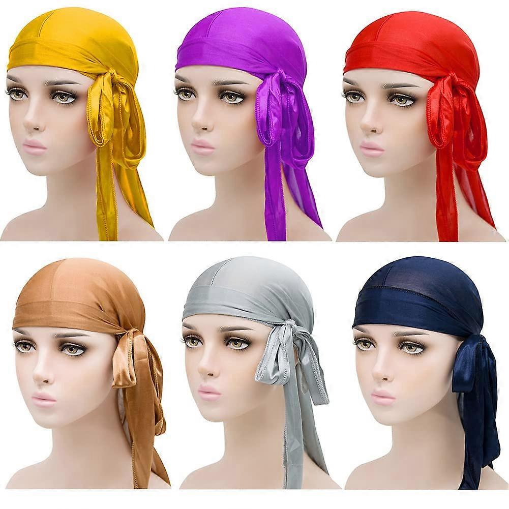 6 Piece Multicolor Silky Satin Durag Set for Men and Women with Smooth Surface and Long Tails