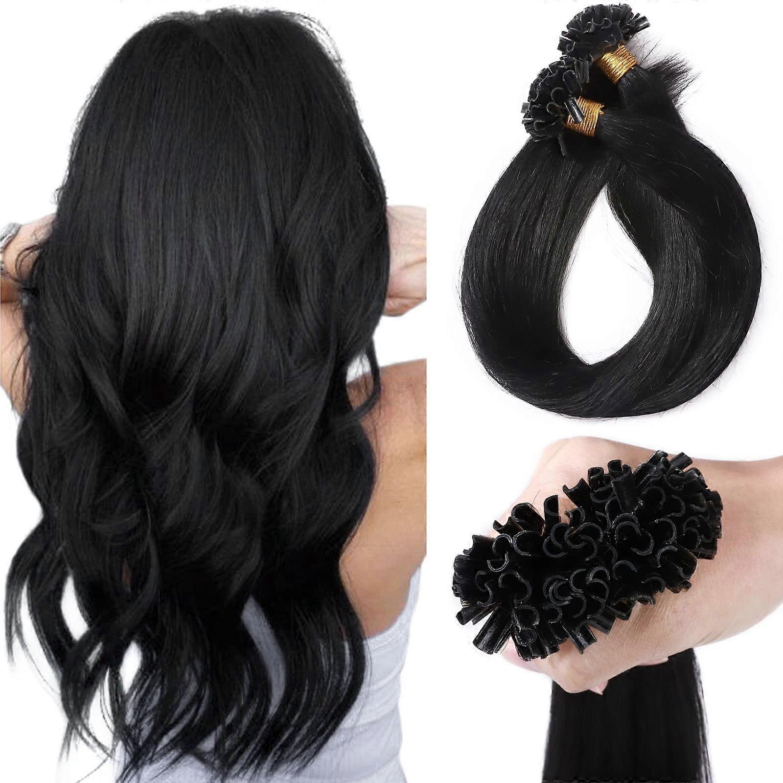 U Tip Hair Extensions 14 Inch Jet Black Remy Human Hair Prebonded Keratin Fusion 50 Strands