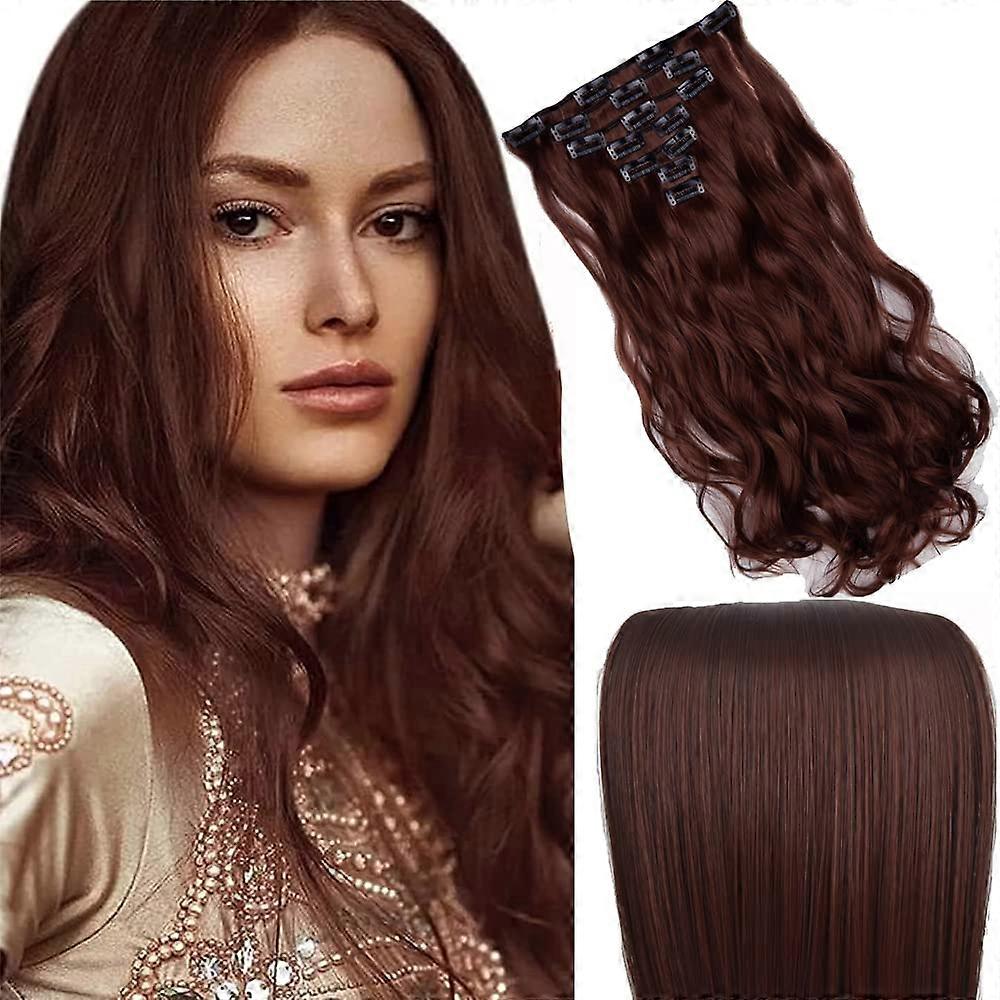 20 Inch Curly Wavy Clip in Hair Extensions Full Head Auburn Red Heat Resistant Natural Texture