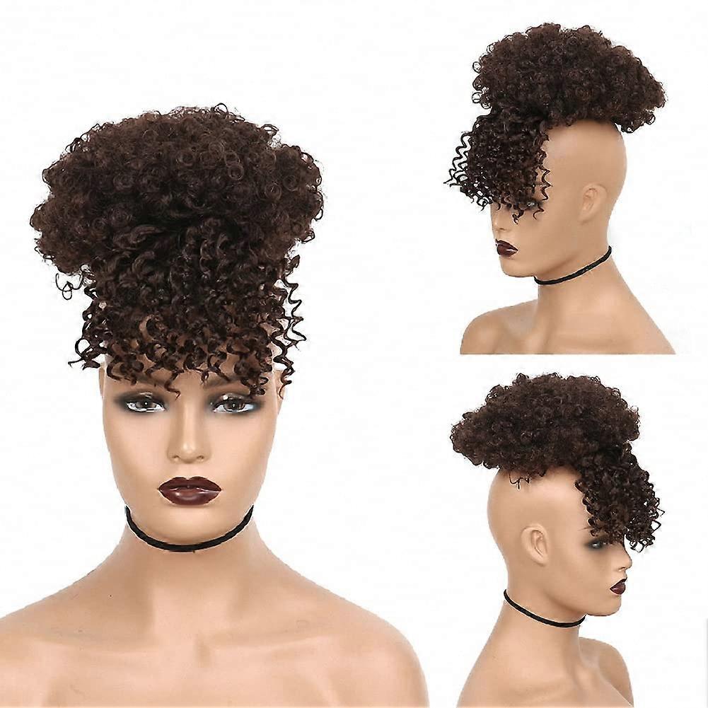 Afro Puff Ponytail with Bangs Clip In Hair Extensions Heat Resistant Synthetic Light Brown 4#