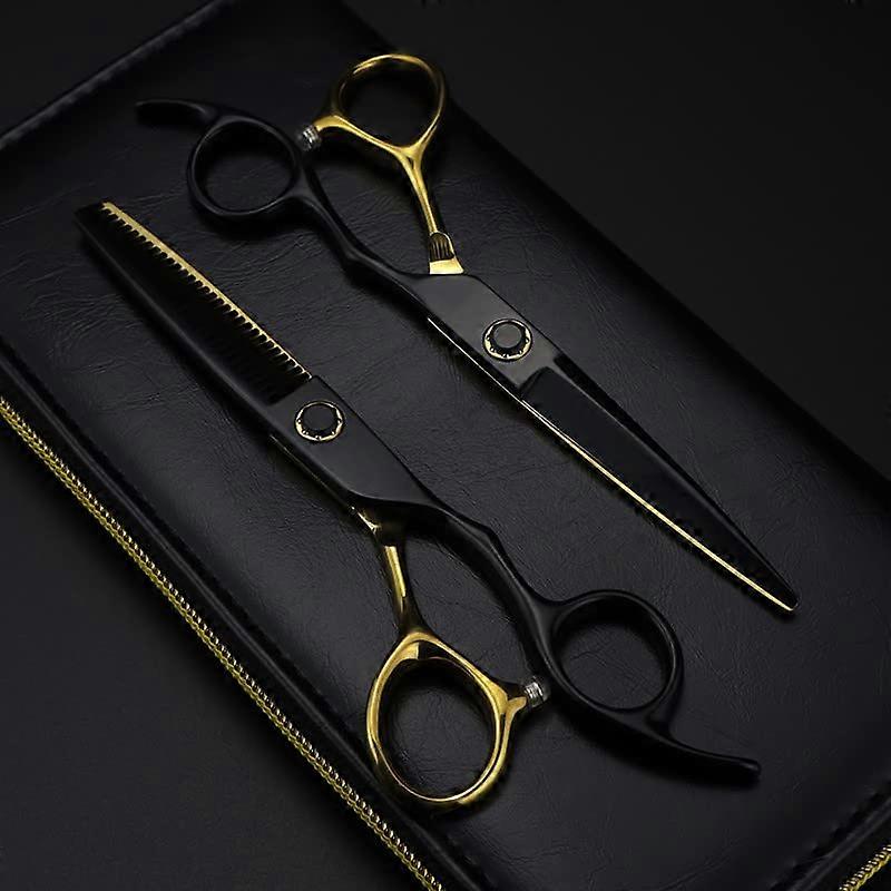 Professional Hair Cutting Scissors Set, 6in Black Gold Barber and Thinning Shears with Bag