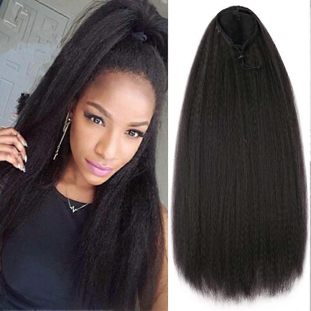 28 Inch Synthetic Yaki Drawstring Ponytail Extension Natural Black Kinky Straight Hairpiece for Black Women