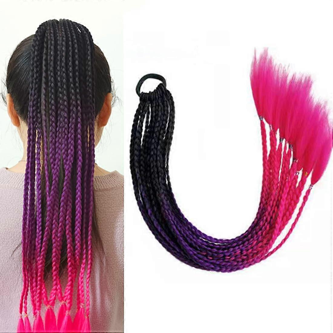 Colored Braided Ponytail Extension for Kids and Girls Key benefits Instant length and volume: Adds 24 inches of colorful hair to create long ponytails and braids without waiting for natural growth. Easy and quick to use: Prebraided bundle attaches with a builtin rubber band for fast styling similar to a traditional hair tie. Temporary color and texture: Handwoven synthetic microfiber offers a bold black and red gradient to change your look without dyeing natural hair. Lightweight and comfortable: At 50 grams per bunch, the extension is easy to wear all day and does not pull on the scalp. Durable and low maintenance: Smooth, shedding fibers with no strong odor; can be trimmed to desired length. Product specifications Color: black and red Length: 24 inches Weight: 50 g per bunch Pack contents: 1 bunch containing 12 thin braided strands Attachment: Rubber band binding for secure, simple placement Material: quality synthetic microfiber, handwoven braid construction How it solves common needs Short hair to long styles: Instantly create a long ponytail or cascading braid for special events or everyday play. Low hair volume: Add fullness to a thin ponytail or halfup style without teasing or multiple products. Singlecolor hair makeover: Introduce a vibrant twotone accent to plain hair for themed events or creative looks. Suggested uses and scenarios School spirit day or crazy hair day: Apply the braided extension to create standout, colorful styles in seconds. Parties and dressup: Use the extension for costume looks, themed birthday parties, or photo sessions where bright accents are desired. Everyday styling for kids: Make halfup ponytails, mini ponytails, or multiple small braids more playful and full. Care and fit notes Designed for easy on and off wear; suitable for children and girls but can be used by anyone looking for temporary colorful braids. Can be trimmed to suit shorter styles. Remove gently to avoid stress on natural hair. Store flat or hanging to maintain braid shape between uses.