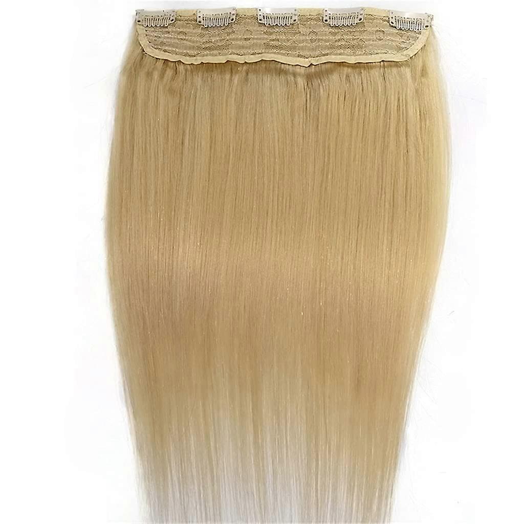 Product overview This 18 inch clip in real human hair extension in color #613 Light Blonde provides instant length and volume with a silky straight texture. The set includes one double weft with five secure clips and a total weight of 60 to 100 g including clips. The hair is unprocessed human hair that can be dyed and heatstyled when dry. Key features and benefits Real human hair: Natural look and feel, soft, bouncy, and shiny. Cuticles aligned in one direction to reduce tangling and maintain a smooth finish. Ready to style: Dyeable and safe to iron when dry, allowing color matching and repeated styling. Durable construction: Tight double weft for minimal shedding and reduced tangling; designed for long service life with proper care. Easy and fast application: Five snap clips attach to your natural hair for a secure hold in minutes without professional help. Natural thickness: Designed to match the thickness of a normal ponytail; short hairs may be mixed in for a natural blend. Size and material details: Size 18 Inch. Length range 14 to 24 inches. Color 613 Light Blonde. Material human hair. Texture silky straight. Number of wefts 1. Number of clips 5. Set weight 60 to 100 g including clips. Care and handling Brush with a soft bristle brush before and after use to remove knots and tangles. Do not brush while wet. Only use hot tools on fully dry hair. Do not sleep with wet hair. Secure hair in a loose braid or ponytail before sleeping. Color variations may occur due to different lighting and monitor settings. The hair is unprocessed and can be dyed to other colors. How to apply 1. Divide your hair into sections. For thin hair, gently tease the lower half in 1 inch sections. 2. Choose the weft that fits each section and pick up a thin slice of natural hair as wide as the clip weft. 3. Place the clip on of the elastic or natural hair and snap closed. Smooth hair with fingers or a brush, leaving about 1 to 2 inches of space from the scalp to the extension. 4. Create the next section about 0.5 inches above the previous one and repeat until the head is complete. Use scenarios Everyday volume and length: Add fullness to fine hair for a natural daily look. Special events: Create a polished hairstyle for weddings, parties, or photos. Styling practice and transformations: Experiment with color and styles without committing to permanent changes. What to expect Natural shading and possible short hairs mixed in for realistic blending. Slight color differences may appear across devices or lighting. With proper care the extension can remain in good condition for extended use. Specifications Size: 18 Inch Length: 14 to 24 inches Color: 613 Light Blonde Material: Human hair Texture: Silky straight Wefts: 1 Clips: 5 Set weight: 60 to 100 g (including clips)