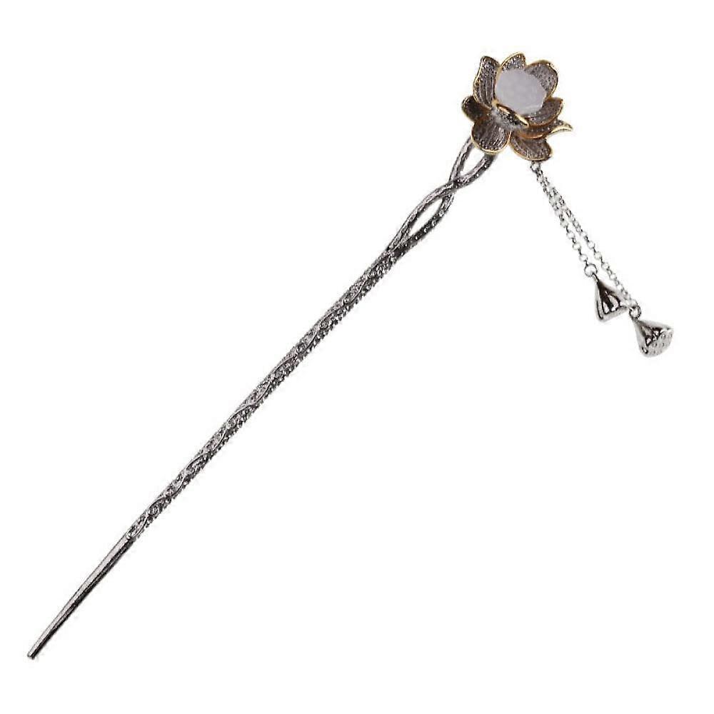Silver Hanfu Tassel Hair Sticks for Buns Vintage Hair Pins for Thick Hair with Jade Lotus