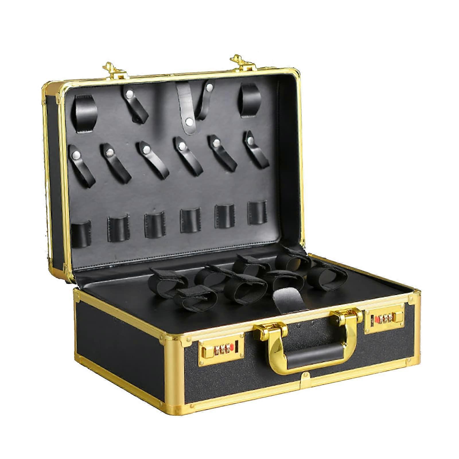 Barber Tool Case with Handle Gold Multi‑Compartment Travel Organizer Box for Salon Stylists