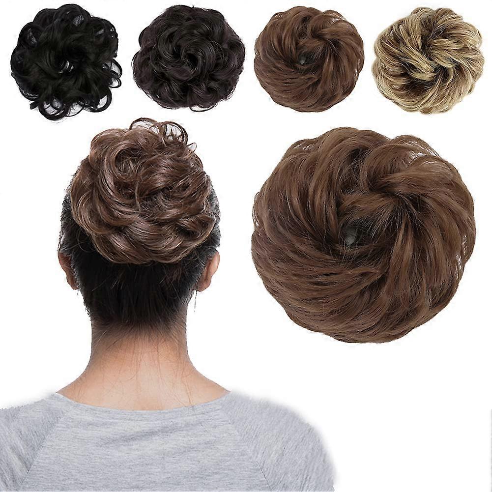 Messy Bun Hair Piece for Women, Synthetic Curly Scrunchie Extension 12 Light Golden Brown, Natural Looking Updo