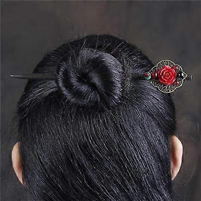 Chinese Wooden Hair Sticks for Women Vintage Tassel Handmade Ethnic Metal Hair Pins