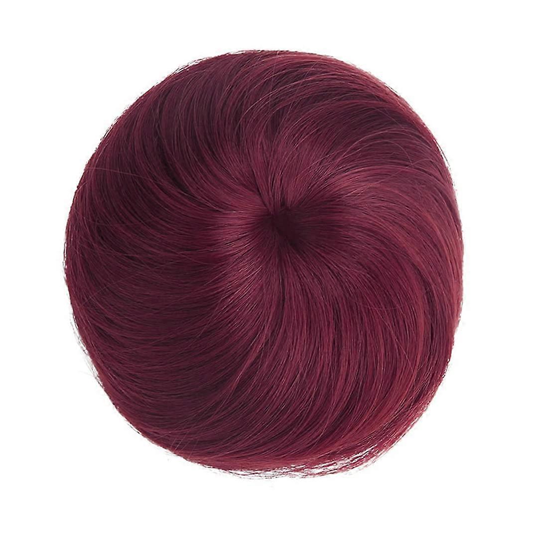 Hair Bun Extension Wine Red Synthetic Chignon Hairpiece for Women with Secure Elastic Fit and Natural Blend