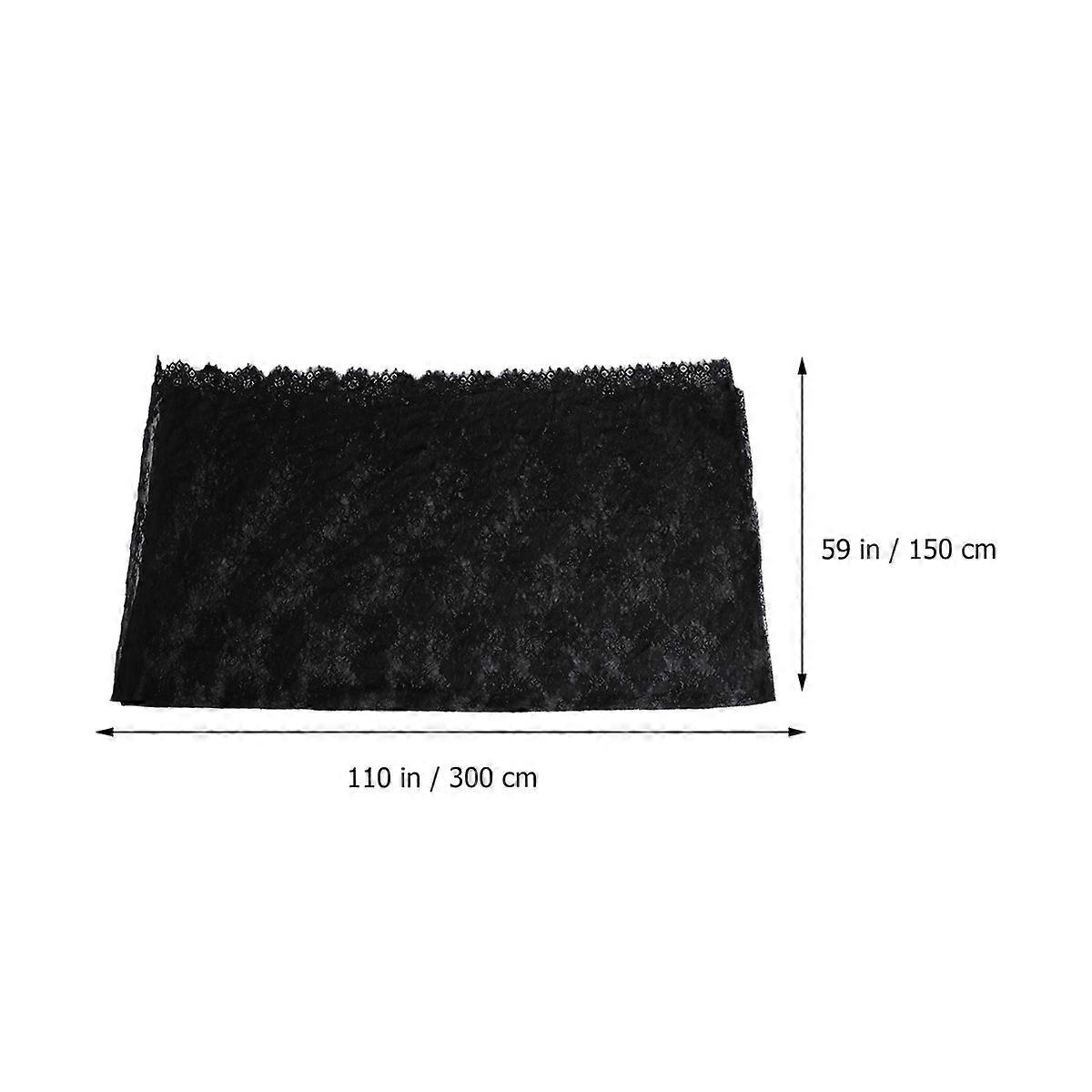 1pc Black Lace Gauze Tablecloth Mesh Table Cover with Hollow Flower Design for Home 300 x 150 cm
