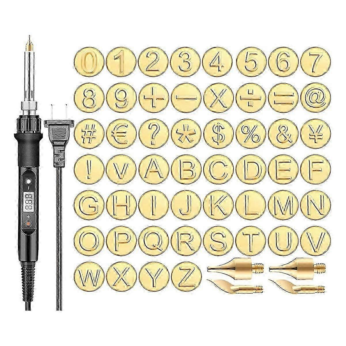 Usage Tips:The entire alphabet is at your fingertips! This DIY Wood Burning/Carving Set includes individually engraved heads for all English letters, allowing you to spell names, create monograms, or add a personal touch to your projectsThese engraving heads are made of materials that durability and . Create intricate and without worrying about wear and tear.These carving heads are perfect for wood, leather, cork, and more.These engraving tips are designed to work seamlessly with your soldering iron, providing a stable and controlled heat source. Achieve precise detailing with ease, turning your soldering iron into a versatile engraving tool.Say goodbye to complicated settings! Installing and replacing engraving heads is a breeze. The tip is securely attached to the soldering iron, ensuring a stable connection during your processWhether you're an experienced or a DIY enthusiast, these carving heads will take your projects to heights. Add of professionalism to your work and impress others with your personalized creations.Specification:Name: DIY Wood/ Leather Burning Set, Letters Copper Moldpower: 80WPower Form: Electric HeatUsage: Welding, Repairing, Branding, IroningPlug Type:US Plug,it applies to Canada, India,Mexico, Thailand, the , the Philippines,Taiwan and so on.Voltage: AC100-240VSet: 56 PcsMaterial: Metalcolour: As shownPackage Contents:1 set x Wood Burning KitOnly the above package content, other products are not included.Note: Light reflection and different displays may cause the color of the item in the picture a little different from the real thing. The measurement allowed error is +/- 1-3cm.