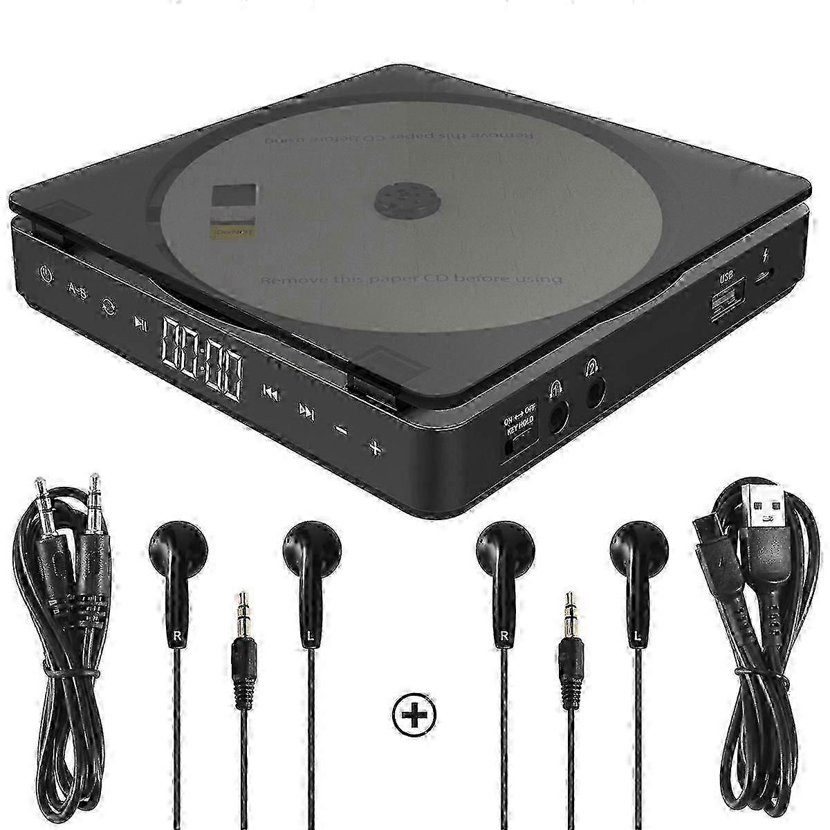 Compact Sports Portable CD Player Touch Button Rechargable Disc Player Reproductor CD Double Headphones CDBlack A-V szbym