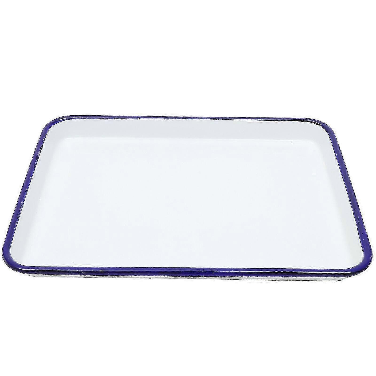 Enamel Bake Pan Enamel Baking Roasting Pan Tray Rectangular Serving Dish Pie Baking Pan26.00X18.00X2.50CMWhite A-V szbym