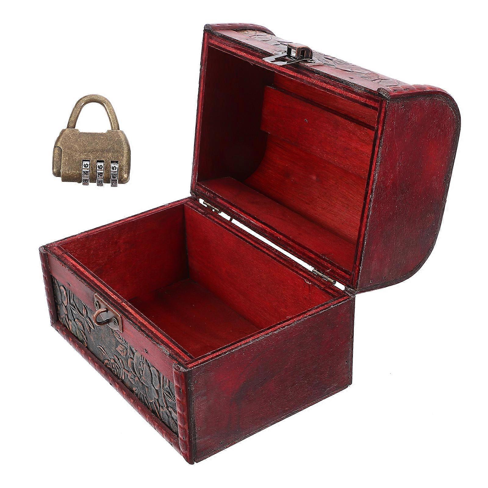 Wooden Pirate Treasure Chest Box for Jewelry Storage 5Pcs Red