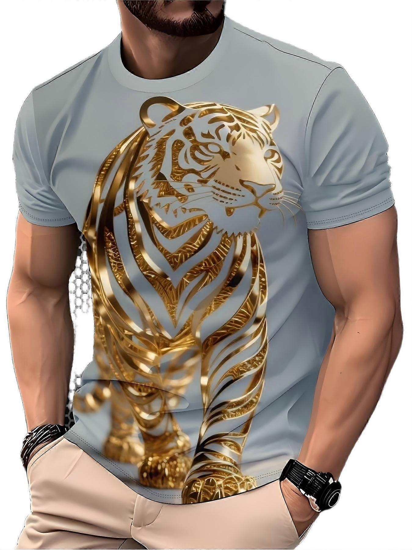Men's Gilded Tiger Graphic T-Shirt Metallic Art Print Tee Bold Casual Statement Top