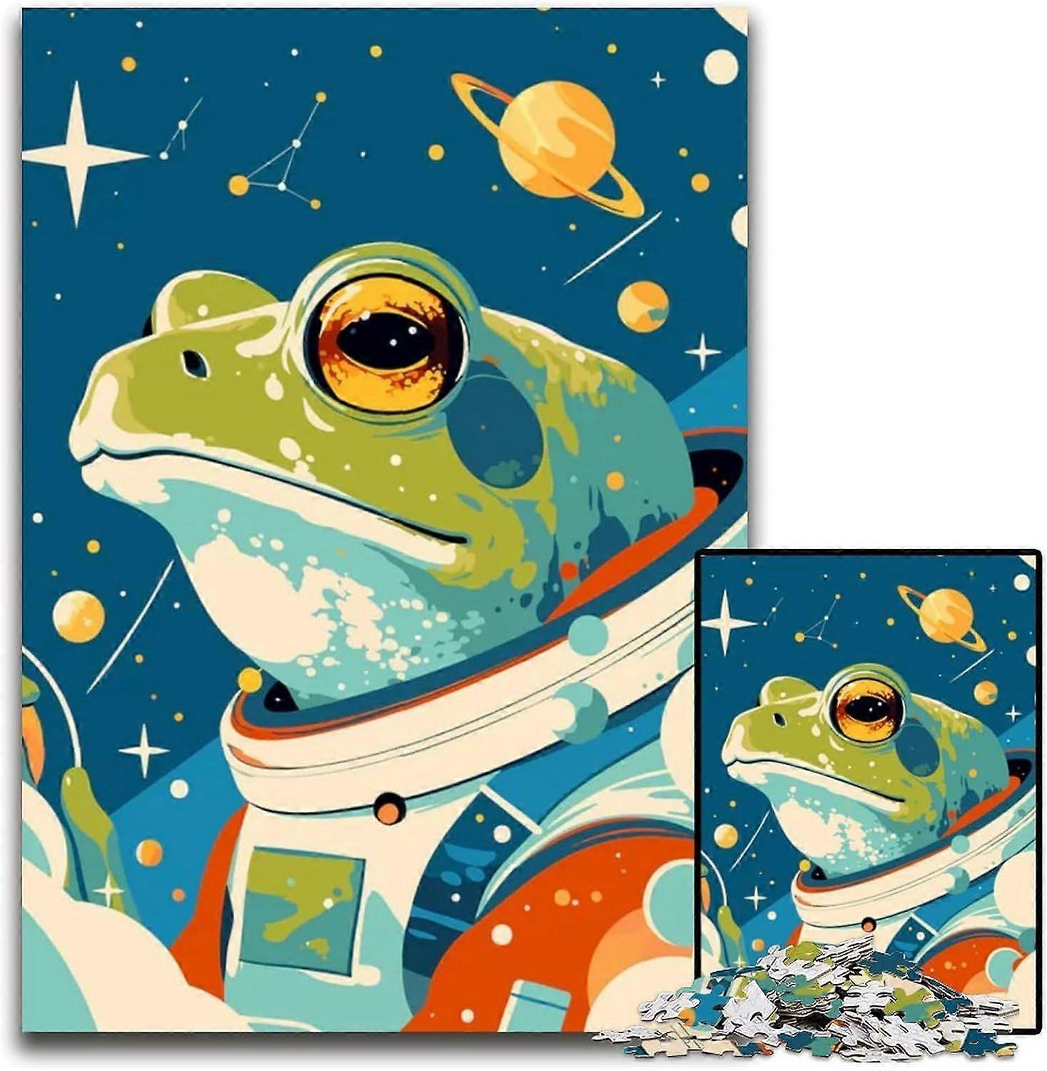 Astronaut Frog in Cosmic Space Funny Animal Art Illustration Jigsaw Puzzle s Wooden Jigsaw Educational Activity for Cognitive Skills Cognitive Skill I