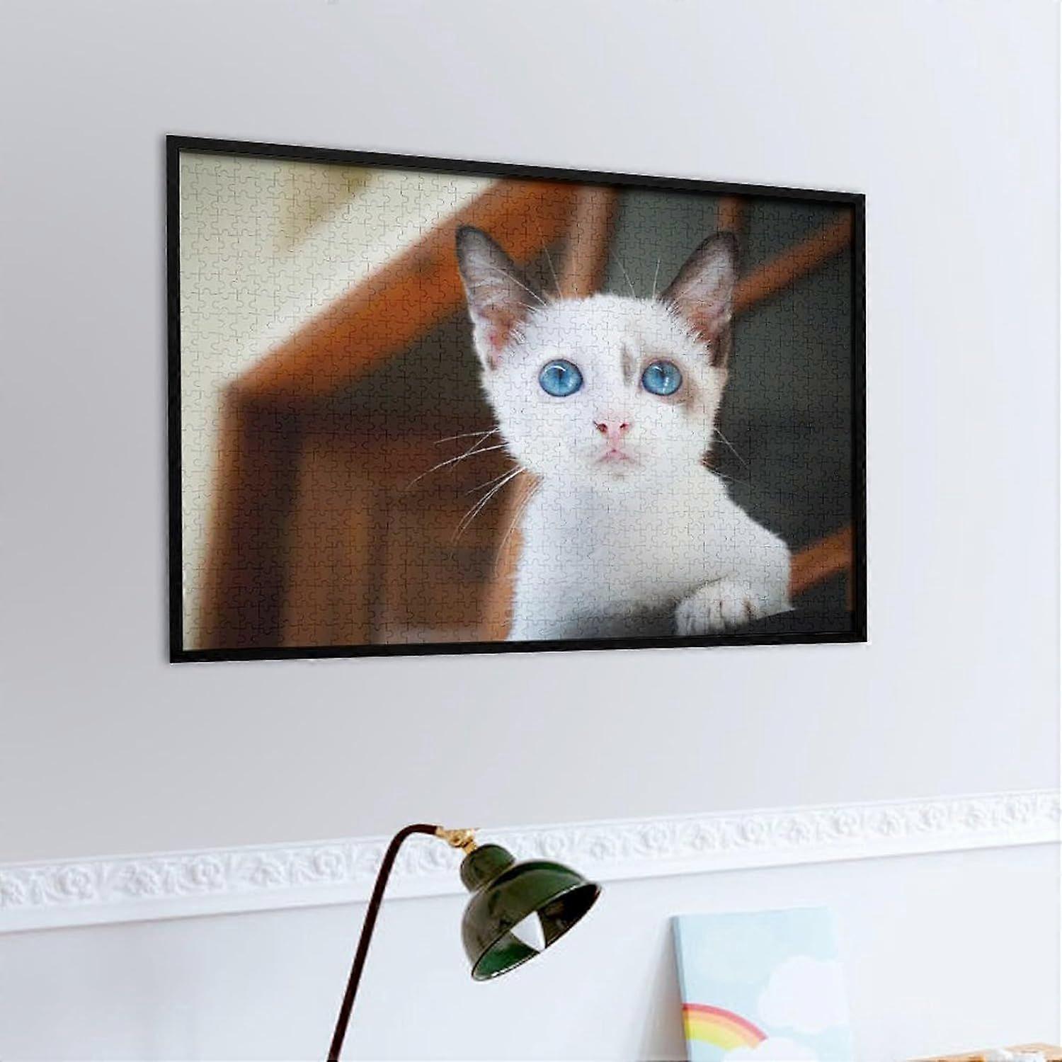 Jigsaw Puzzle s White Cat Wooden Jigsaw Challenging Brain Teaser Family Fun Interactive GameFrame not includedJP-1030