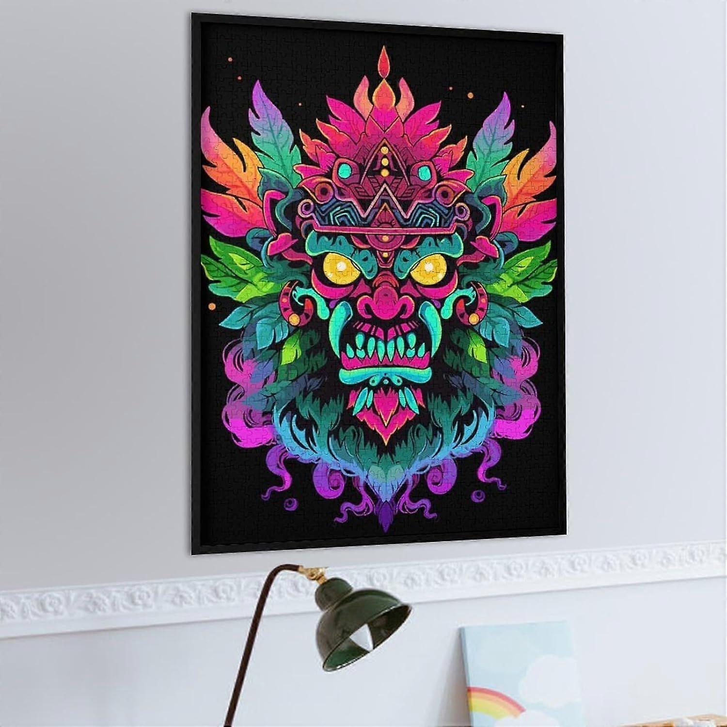 Puzzle Gifts Aztec Mask NeonWooden Jigsaw Puzzle s Perfect DIY Art Decor Or Birthday GiftFrame not includedJP-1177