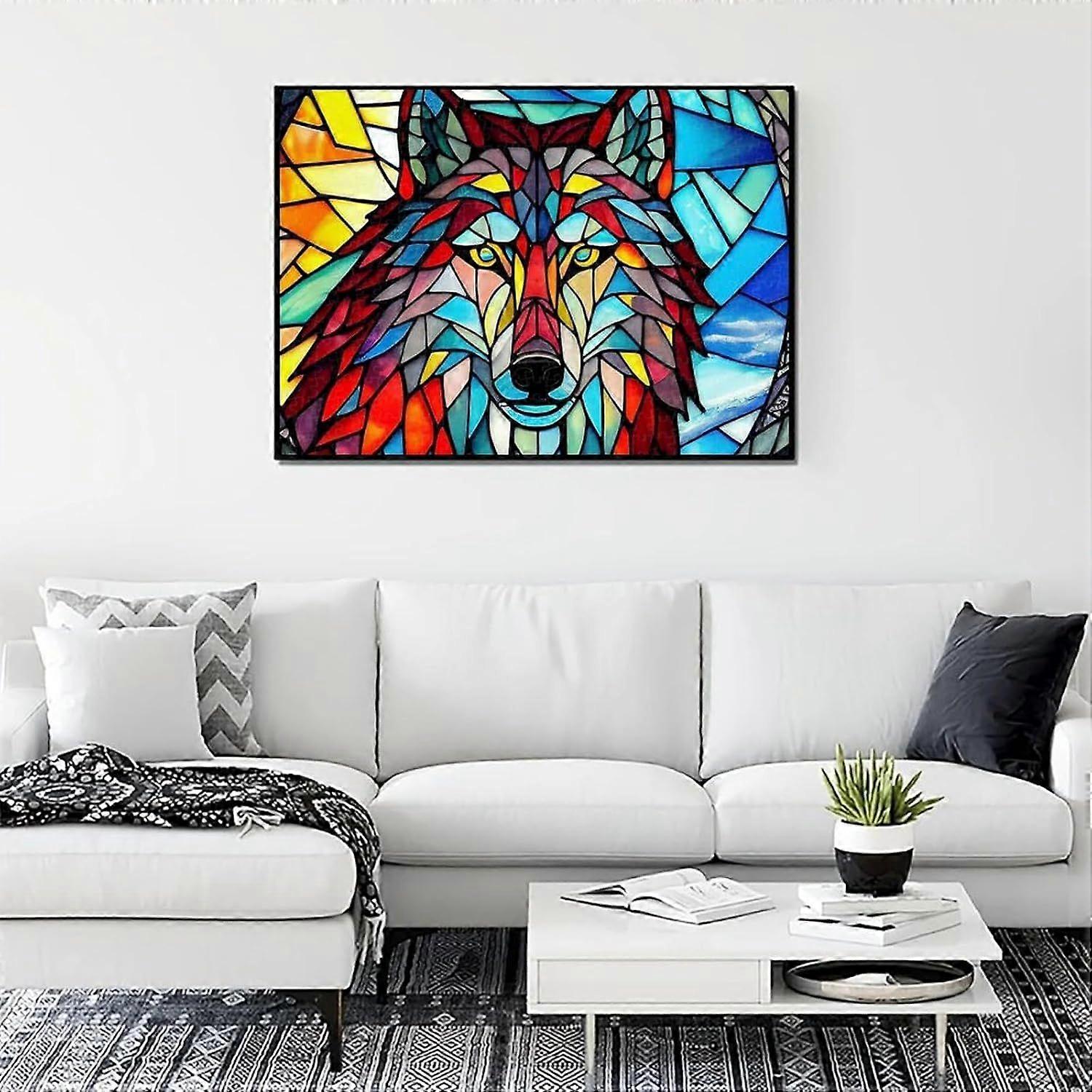 Wolf Stained Glass Style Jigsaw Puzzle Impossible Jigsaw Puzzle s for Home Decor Brain TrainingFrame not includedJP-1127