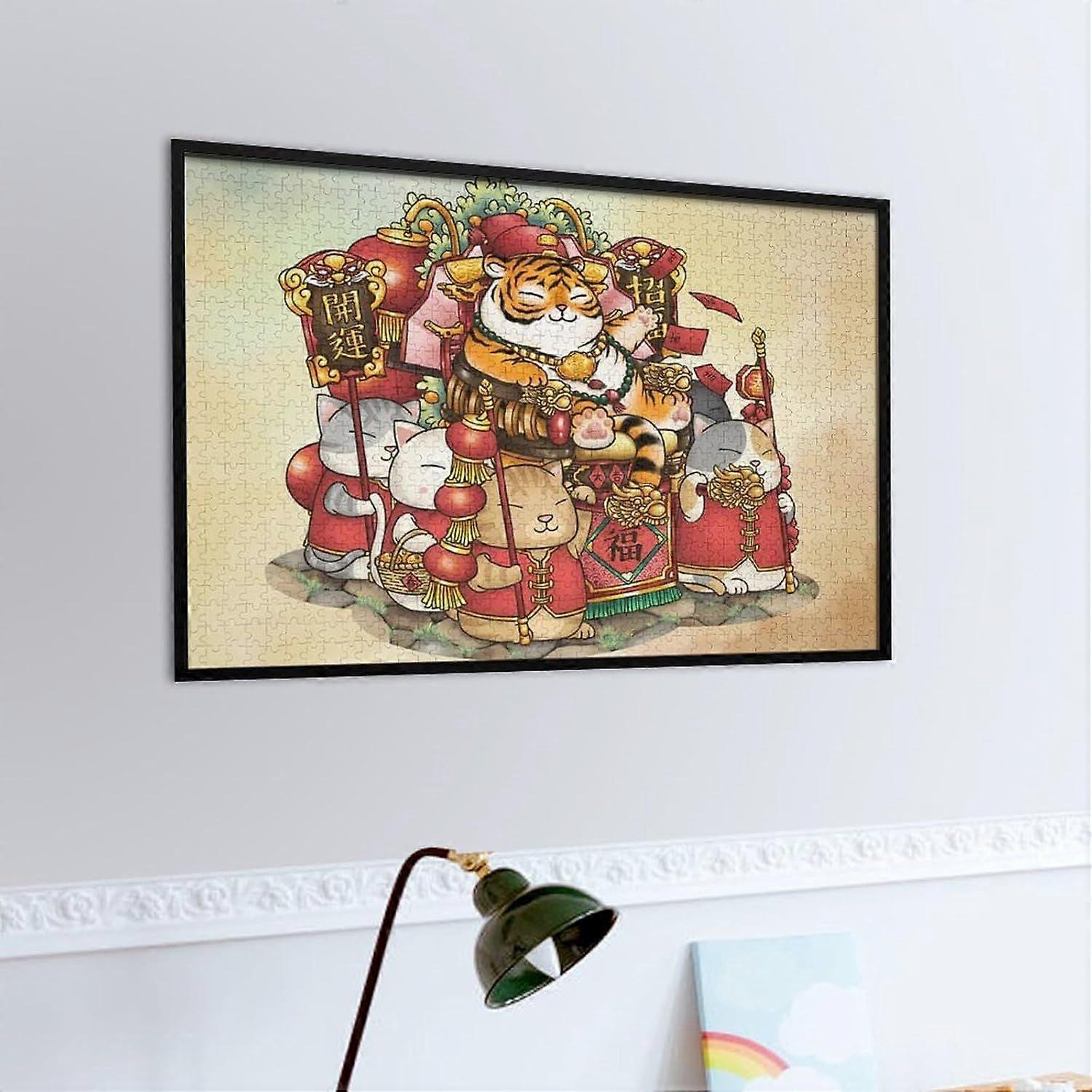 Jigsaw Puzzle s Year of The Tiger with Cat Jigsaw Puzzle s Ideal for Lover Perfect Christmas New Year Valentine's GiftFrame not includedJP-1702