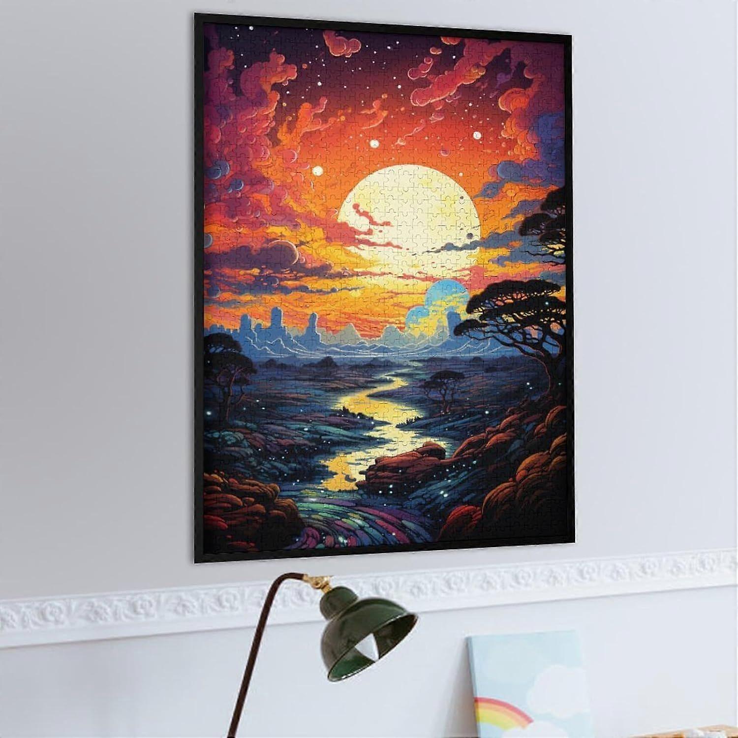 Puzzle Gifts Magical Colorful Sky Wooden Jigsaw Puzzle s Family Activity Brain Teaser Home DecorFrame not includedJP-1586