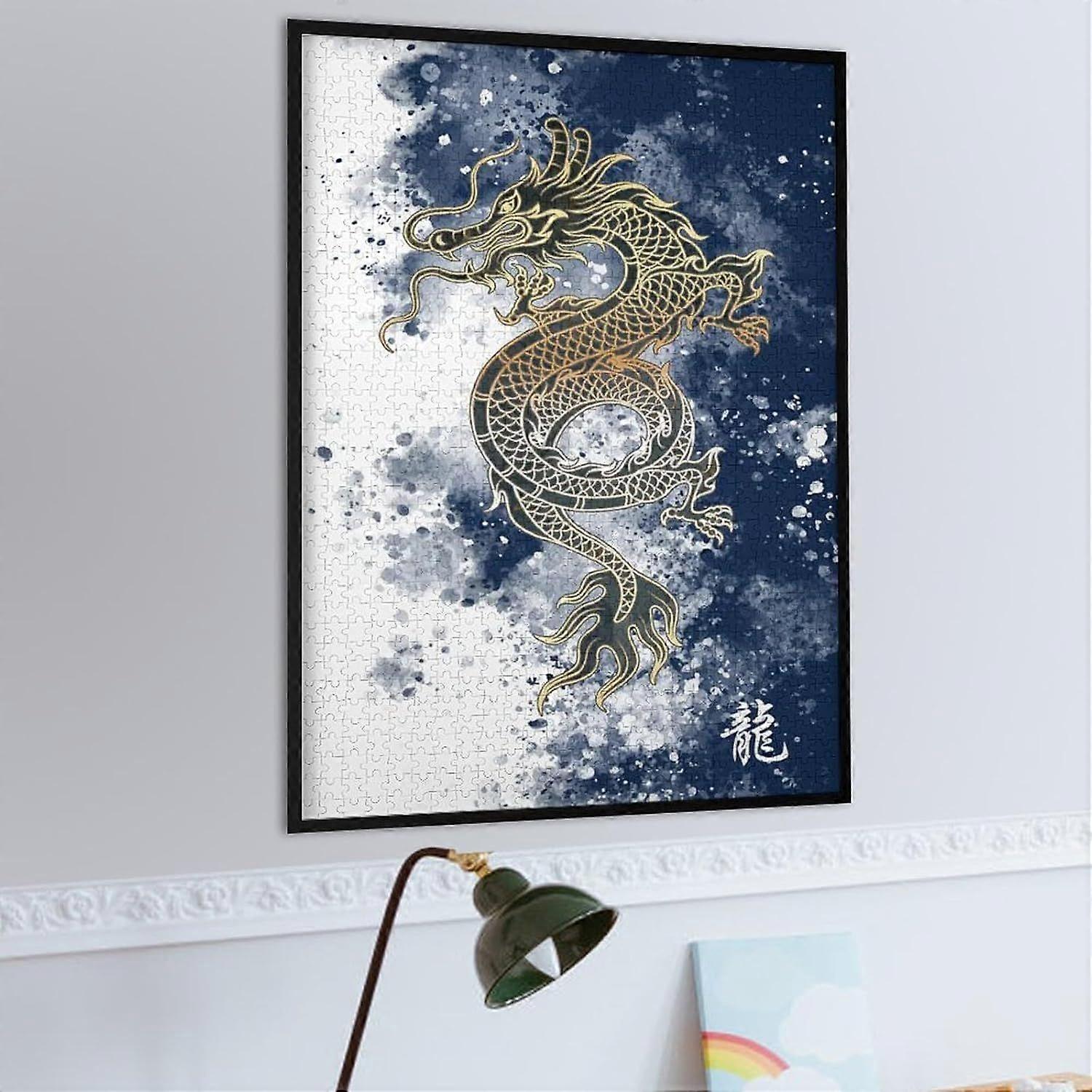 Jigsaw s Asian Gold Dragon Jigsaw Puzzle s Brain Challenge & Home DecorFrame not includedJP-1771