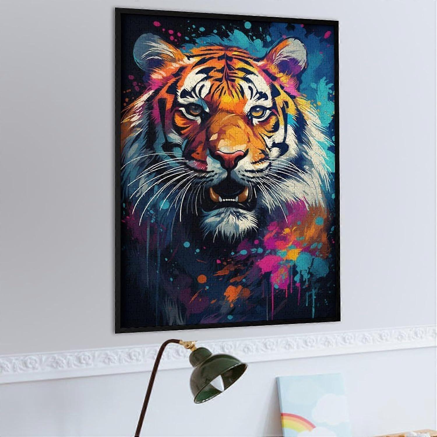Puzzle s Fierce Painting Exotic Tiger Wooden Jigsaw Puzzle s Challenging Brain Teaser Relaxing ToyFrame not includedJP-2450
