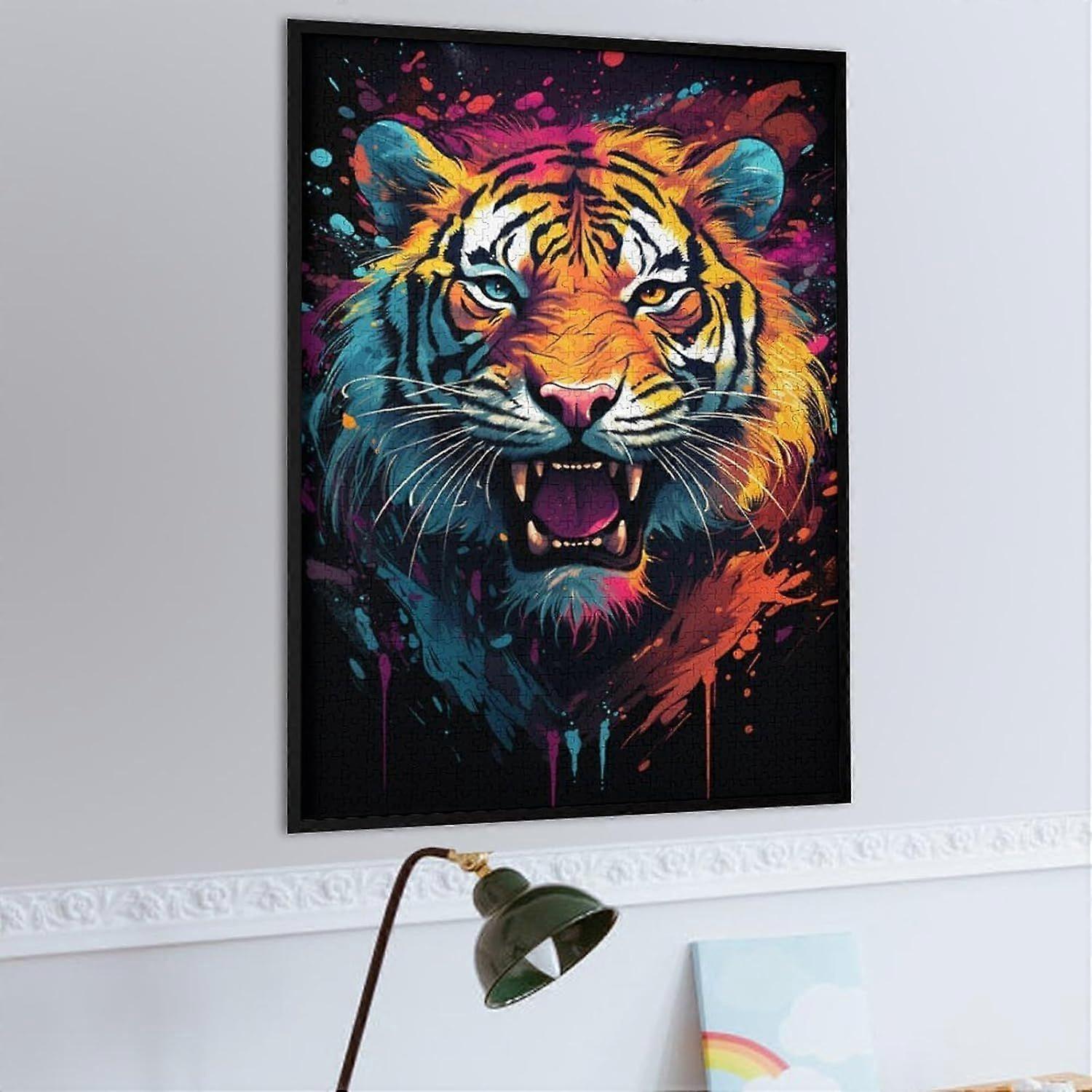 Fierce Painting Fire Tiger Puzzle Jigsaw Wooden Puzzle s Perfect for Christmas Halloween Easter New YearFrame not includedJP-2473