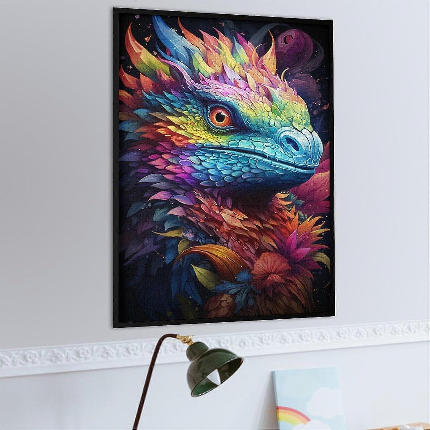 Painting of Colorful Dragon Jigsaw Puzzle s Wooden Puzzle s for Birthdays And HolidaysFrame not includedJP-3064
