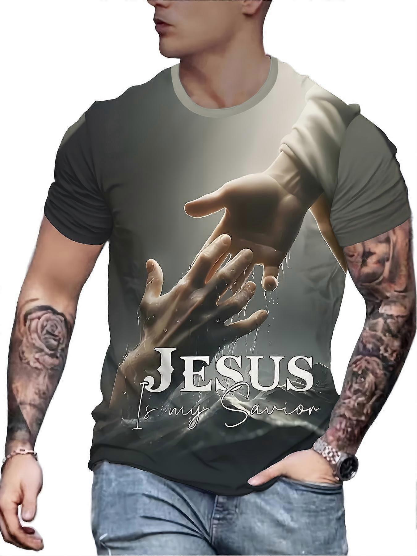 Men's Hand Graphic T-Shirt Neutral Tone Art Print Tee Casual Statement Top
