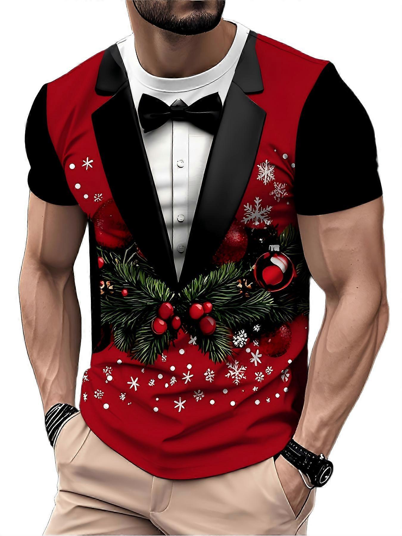 Men's Christmas Suit Graphic T-Shirt Festive Print Tee Casual Holiday Top