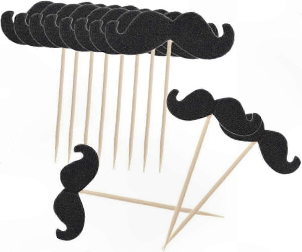 50pcs Wooden Mustache Cake Toppers for Party Decorations Black Cupcake Decor for Showers and Events Fake Mustache Accessory for Boys
