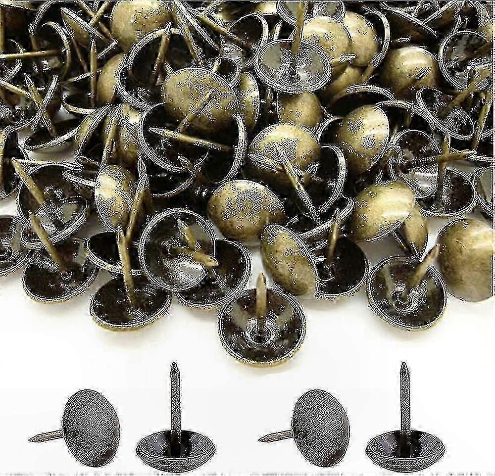 Dimensions: Head diameter – 11 mm; Total length – 17 mm; Quantity – 500 pieces; Color – Bronze. Material: Metal construction with a smooth, burr-free surface; durable and corrosion-resistant. Design: Antique copper finish with a rounded head for safe handling. Enhances furniture with a classic, decorative look. Applications: Suitable for use on jewelry boxes, wine boxes, armchairs, sofas, beds, picture frames, bags, and walls. Installation: Gently press the nail into the surface by hand (approximately 3 mm), then carefully tap with a hammer. Avoid direct hammering with bare hands to prevent bending.