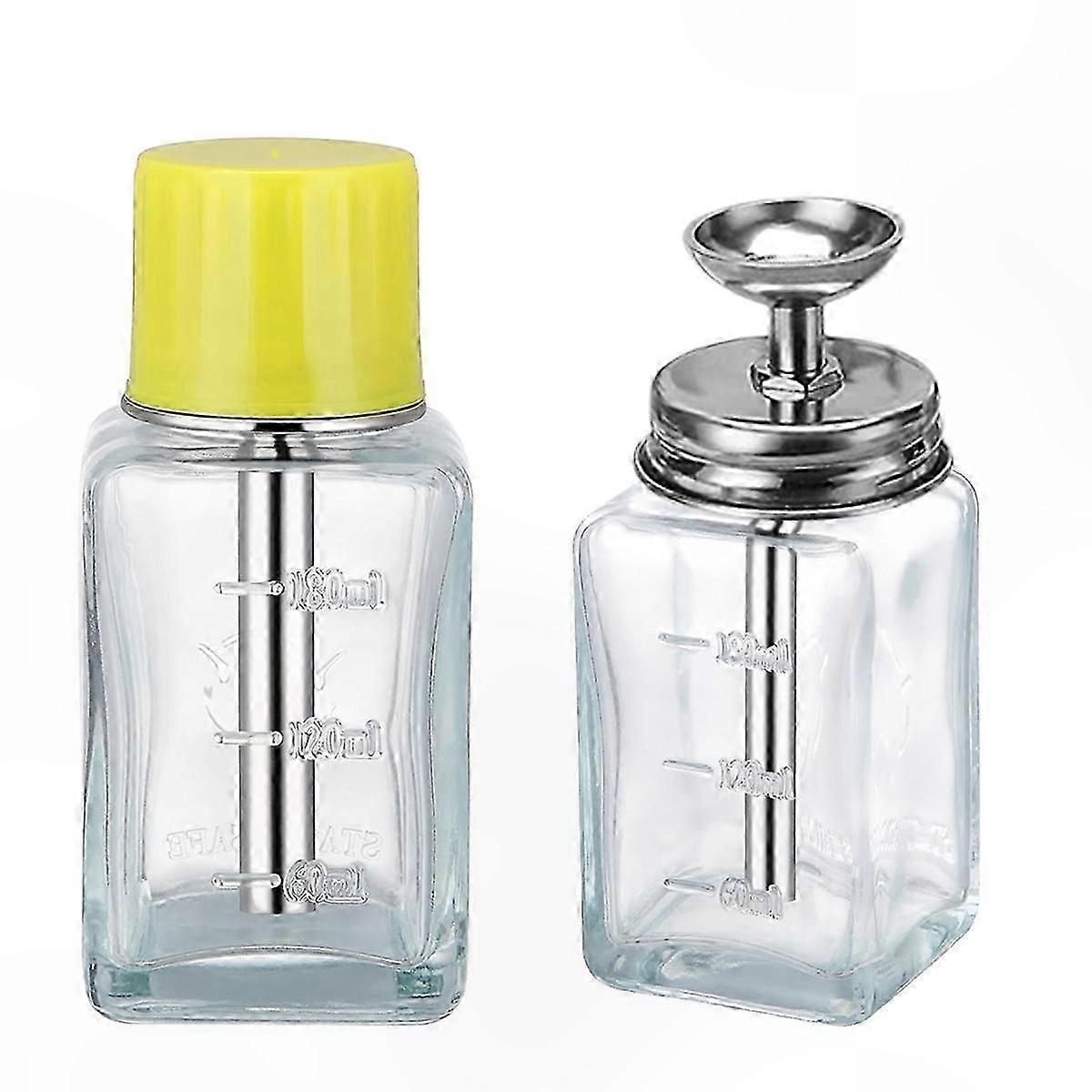 2-Pack 180ml Clear Glass Pump Dispenser with Cap for Acetone or Alcohol Solutions