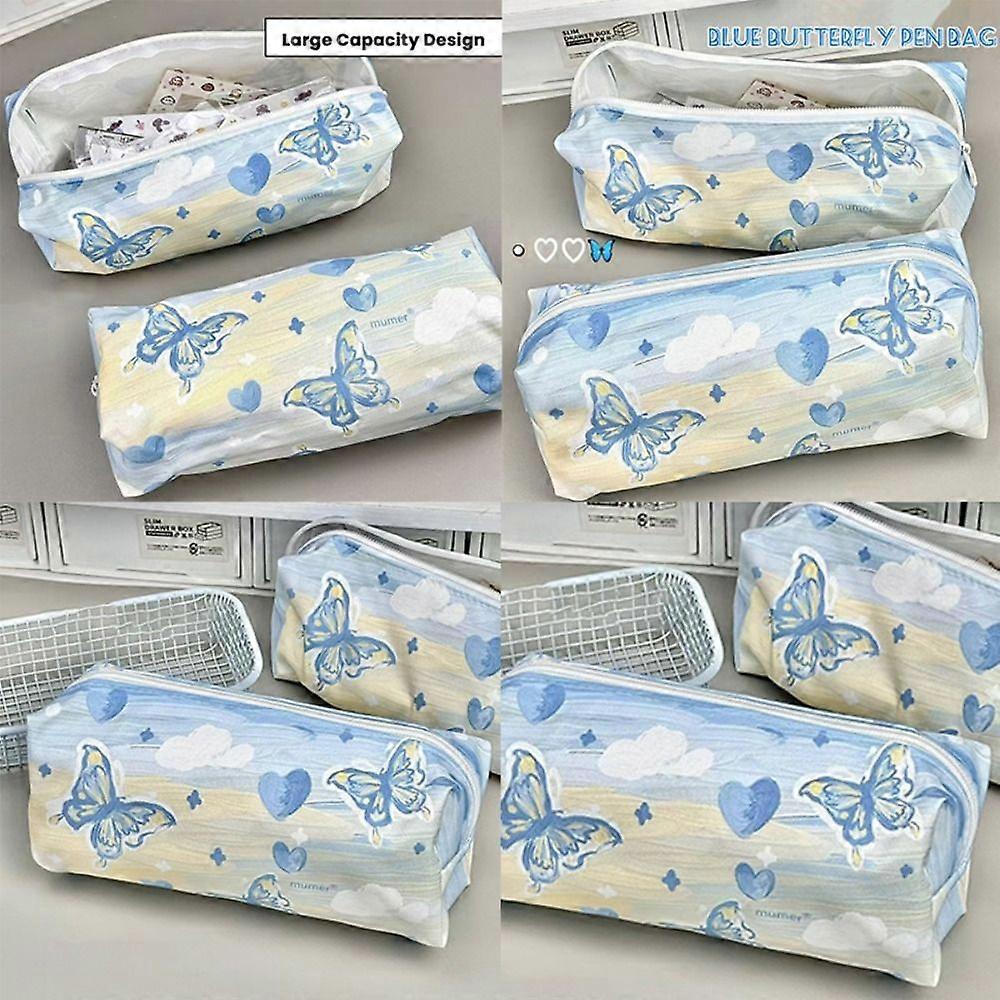 Multi-functional Canvas Pen Bag Oil Painting Series Large Capacity Pencil Case Blue Butterfly Stationery Bag Gift