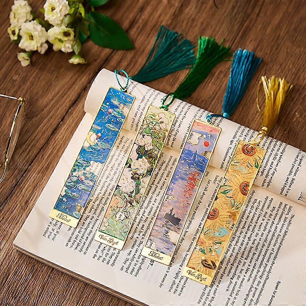 Creative Oil Painting Metal Bookmark Tassel Pendant Ruler Reading Book Clip Student Gift School Office Supplies Pagination Mark