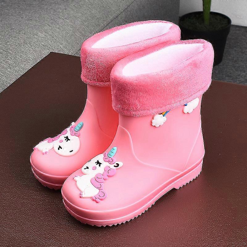 Kids Rain Boots For Girls Rubber Rainboot Boys PVC Warm Children Waterproof Shoes Modis Cartoon Unicorn Removable cotton cover