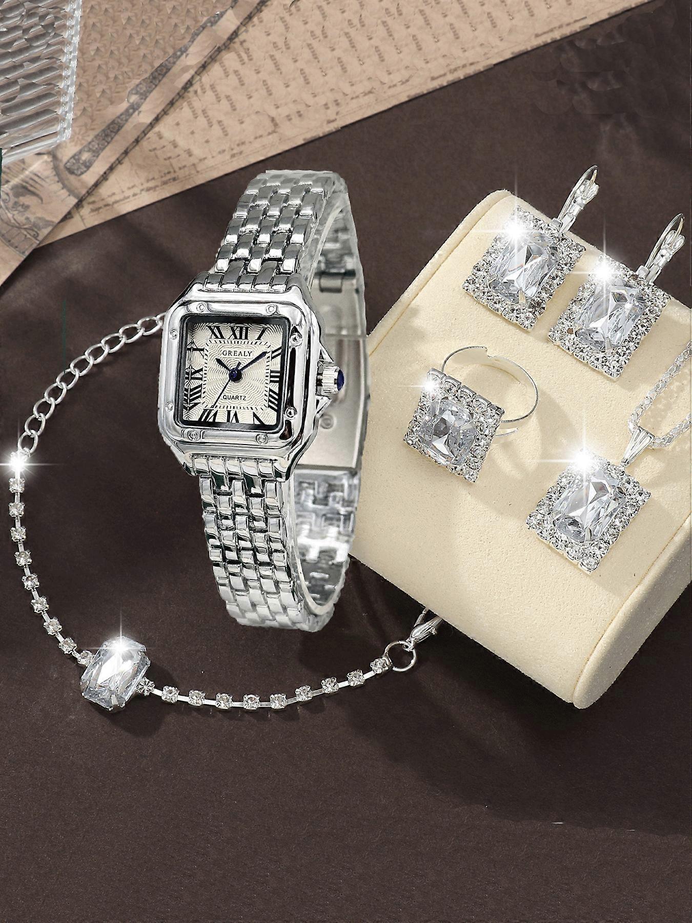 6-piece Classic Watch Vintage Square Waterproof Women's Diamond Set Quartz Watch Set