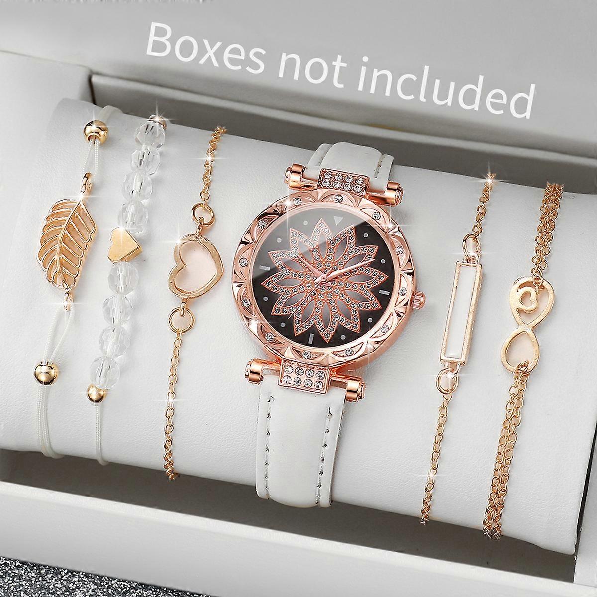 6 Pieces/Set Watch for Women Fashion Rhinestone Flower Dial Watches Quartz Bracelets Set (Without Box)