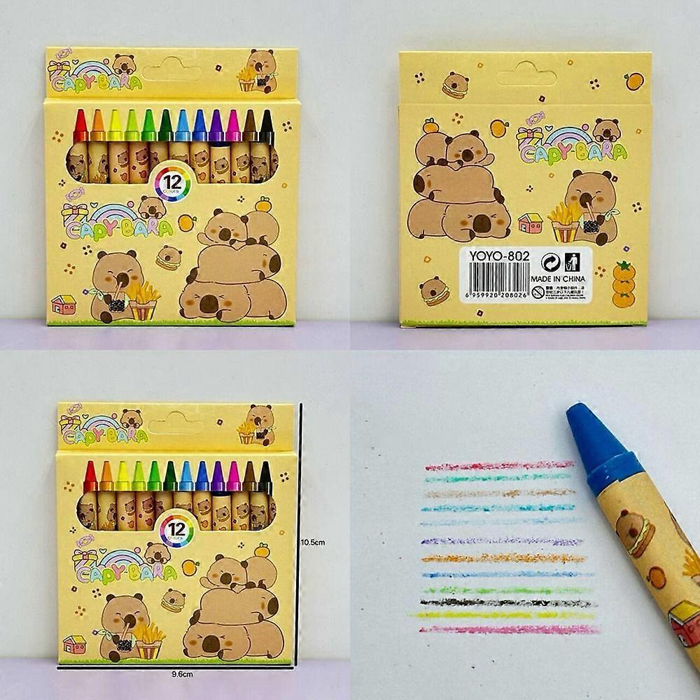 12Pcs New Capybara Crayon Cartoon Twelve Colors Student Graffiti Pen Anime Painting Pen Stationery Gifts