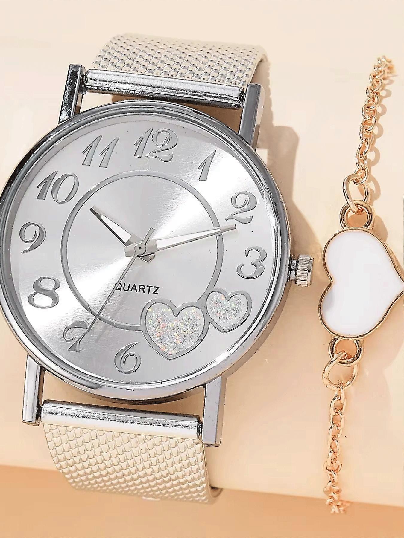 2-piece fashionable round versatile design, light luxury women's watch, women's high-end feel, business temperament set