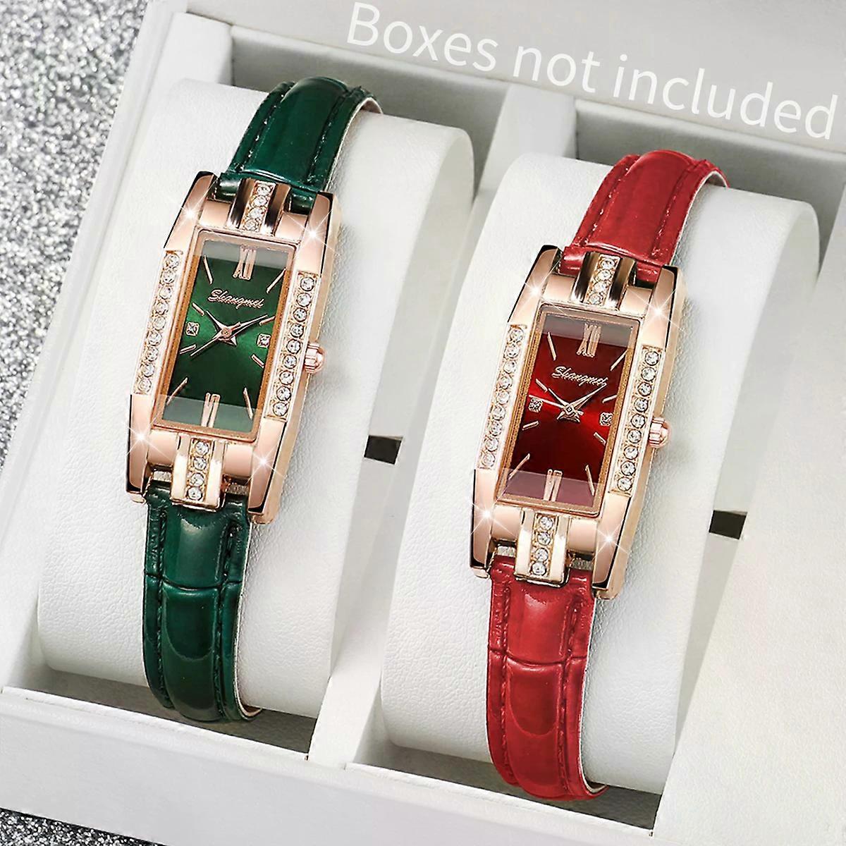 2-piece/complete set of women's fashion watches, rectangular leather bracelet, quartz watch (without case)